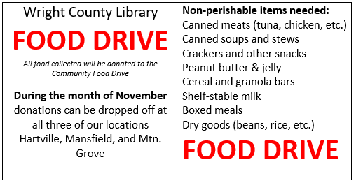 Wright County Library strives to provide the best possible service to our patrons and we welcome any suggestions or comments you may have. Browse our website links to learn more about Wright County Library hours and news.